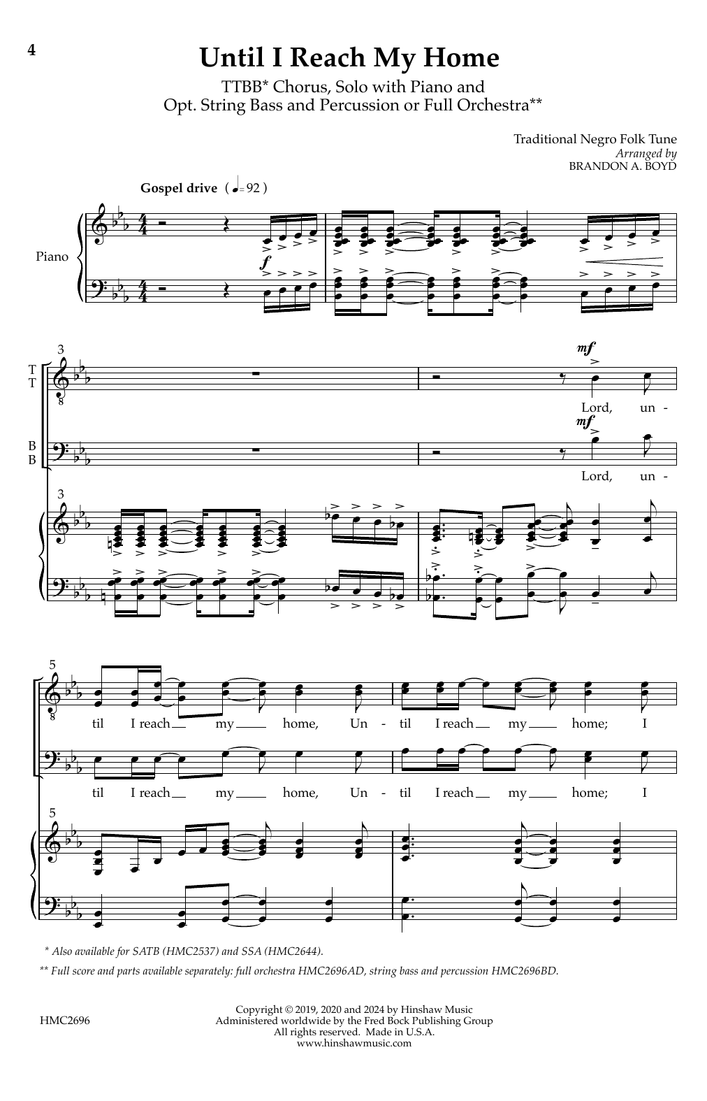 Download or print Brandon A. Boyd Until I Reach My Home sheet music, chords and digital score arranged for TTBB Choir. This Concert score includes 11 page(s).