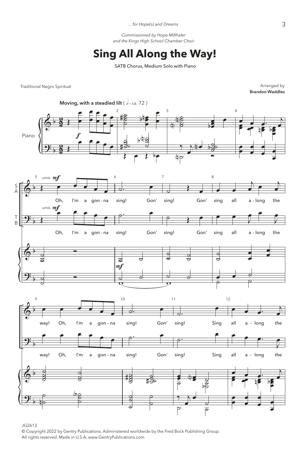 Download or print Brandon Waddles Sing All Along The Way! sheet music, chords and digital score arranged for SATB Choir. This Spiritual score includes 15 page(s).