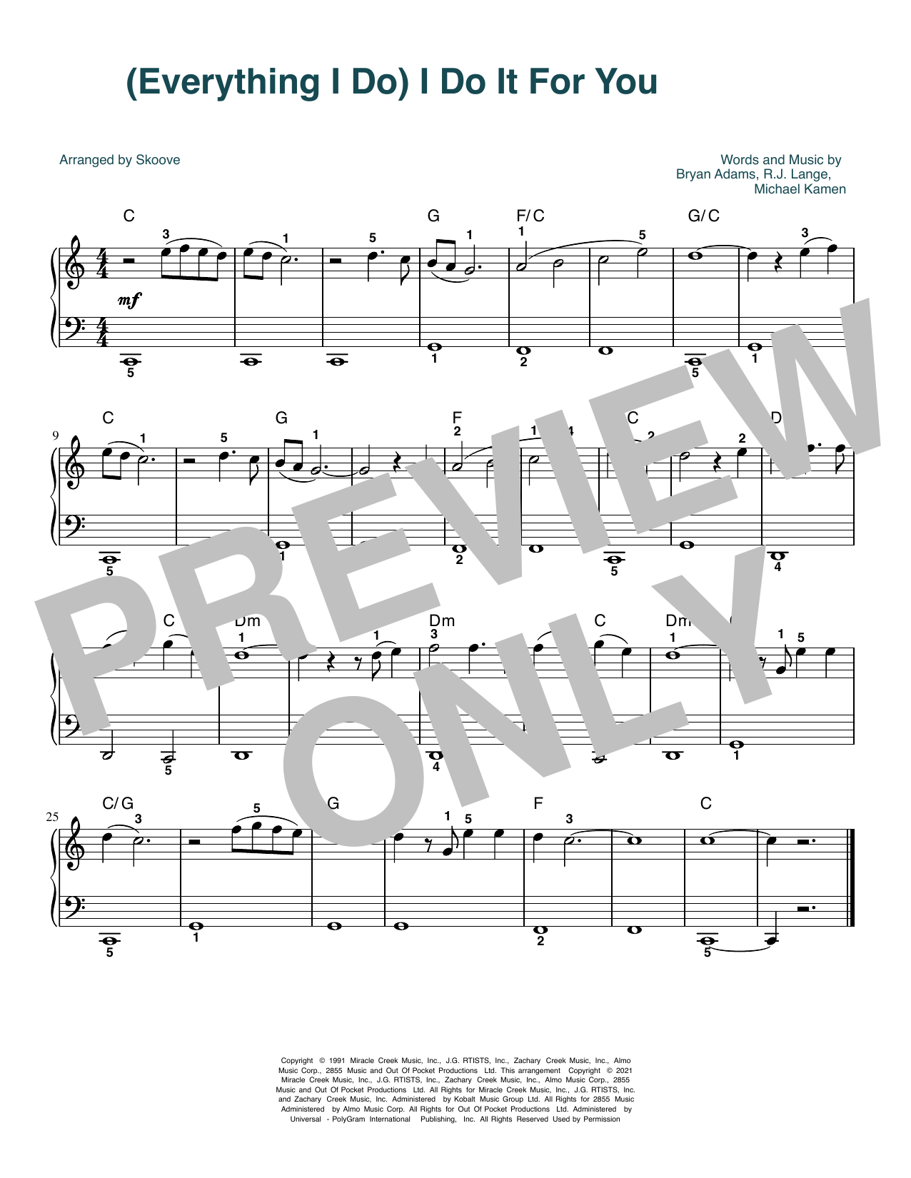Quick facts (Everything I Do) I Do It For You (arr. Skoove) about digital sheet music