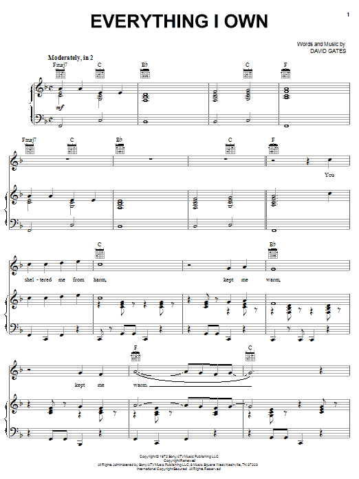 Download or print Bread Everything I Own sheet music, chords and digital score arranged for Guitar Chords/Lyrics. This Rock score includes 2 page(s).