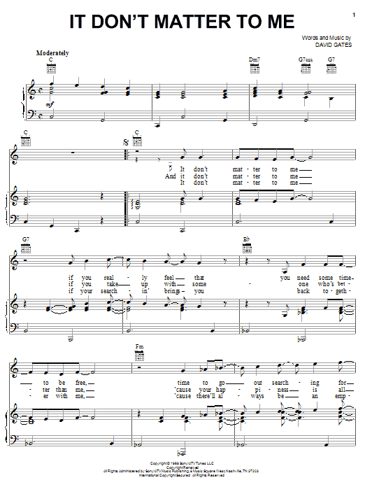 Download or print Bread It Don't Matter To Me sheet music, chords and digital score arranged for Lead Sheet / Fake Book. This Pop score includes 1 page(s).