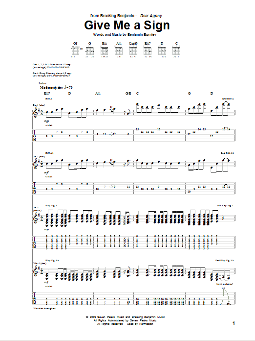 Download or print Breaking Benjamin Give Me A Sign sheet music, chords and digital score arranged for Guitar Tab. This Alternative score includes 7 page(s).