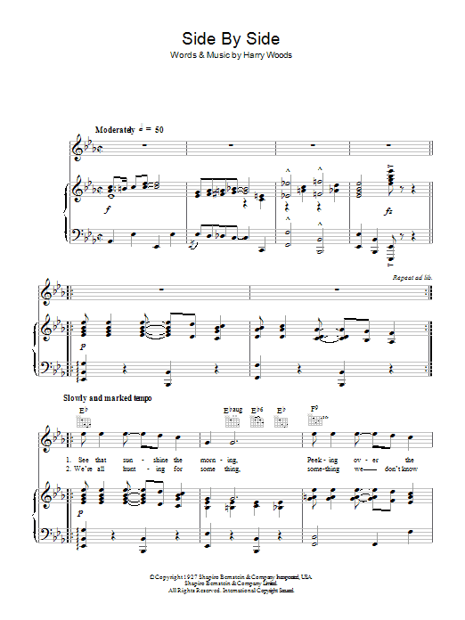 Download or print Brenda Lee Side By Side sheet music, chords and digital score arranged for Piano, Vocal & Guitar Chords. This Oldies score includes 5 page(s).