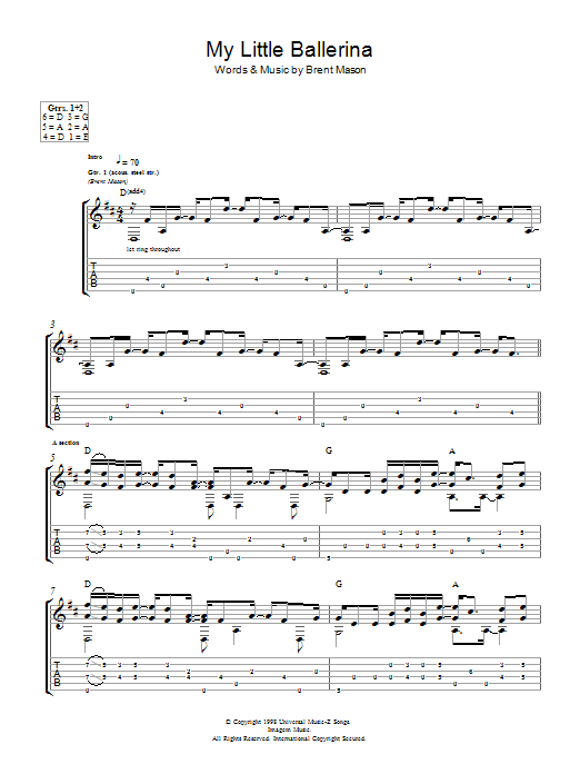 Download or print Brent Mason My Little Ballerina sheet music, chords and digital score arranged for Guitar Tab. This Rock score includes 8 page(s).