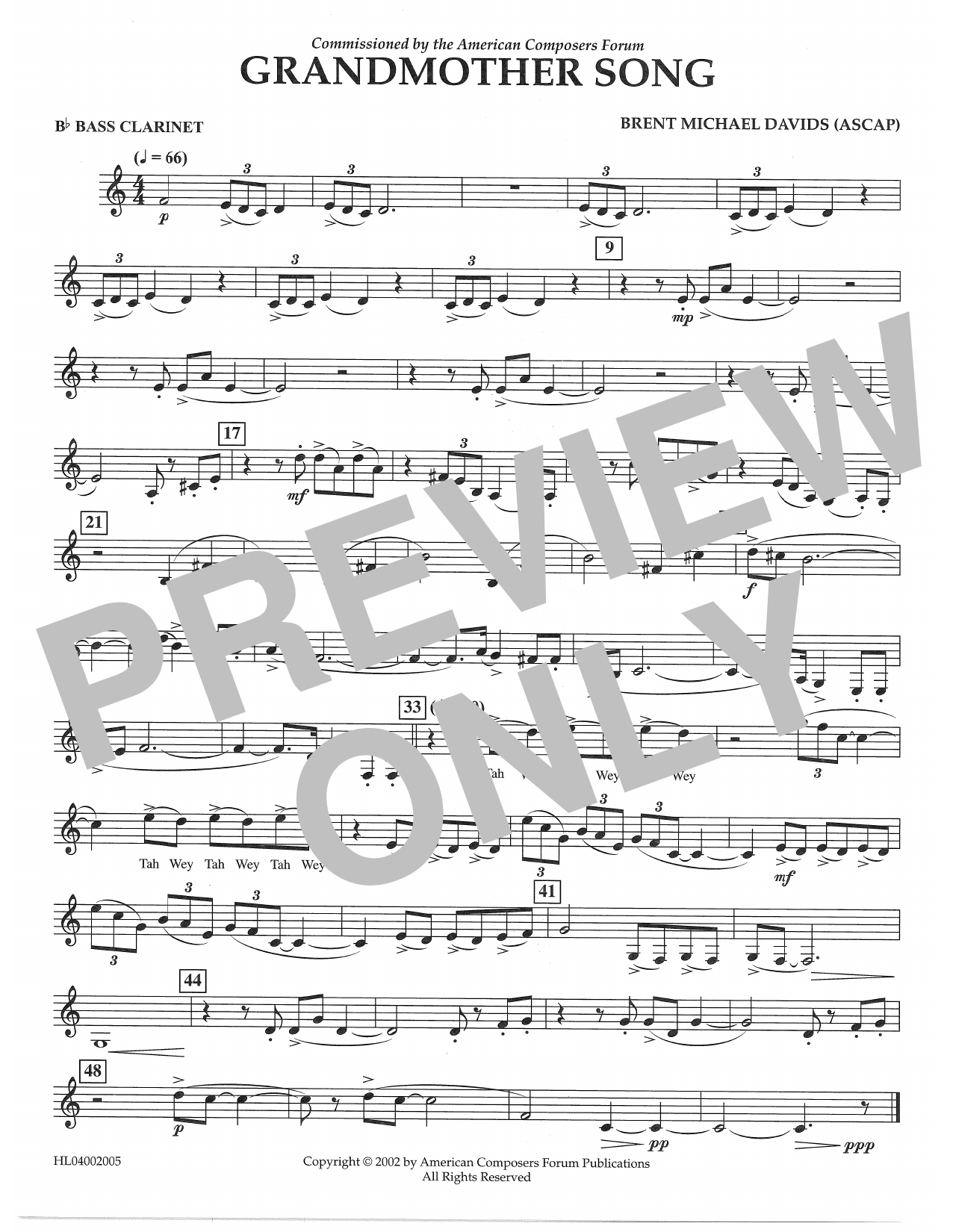 Download or print Brent Michael Davids Grandmother Song - Bb Bass Clarinet sheet music, chords and digital score arranged for Concert Band. This Concert score includes 1 page(s).