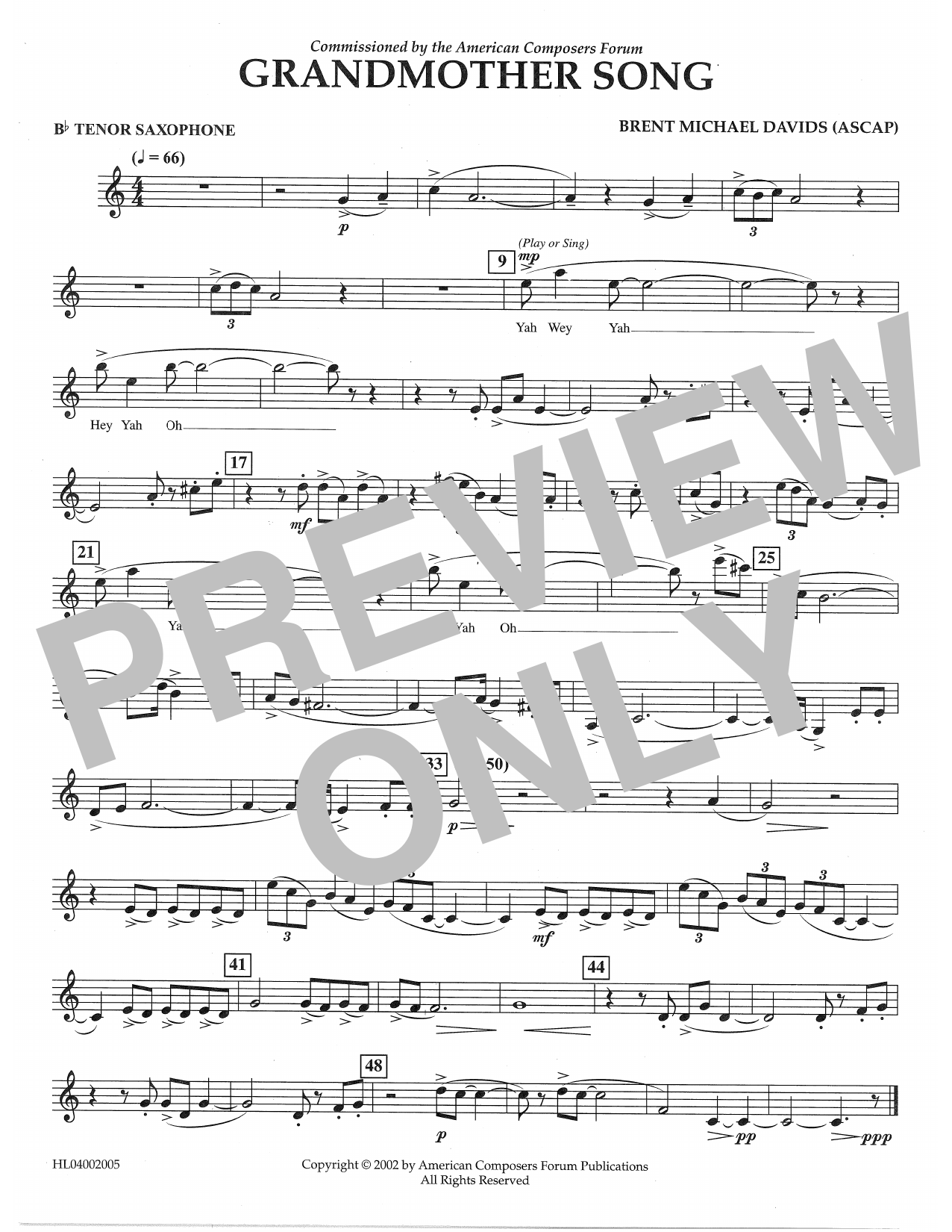 Download or print Brent Michael Davids Grandmother Song - Bb Tenor Saxophone sheet music, chords and digital score arranged for Concert Band. This Concert score includes 1 page(s).