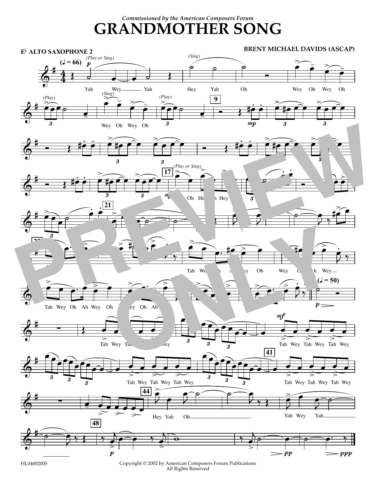 Download or print Brent Michael Davids Grandmother Song - Eb Alto Sax 2 sheet music, chords and digital score arranged for Concert Band. This Concert score includes 1 page(s).