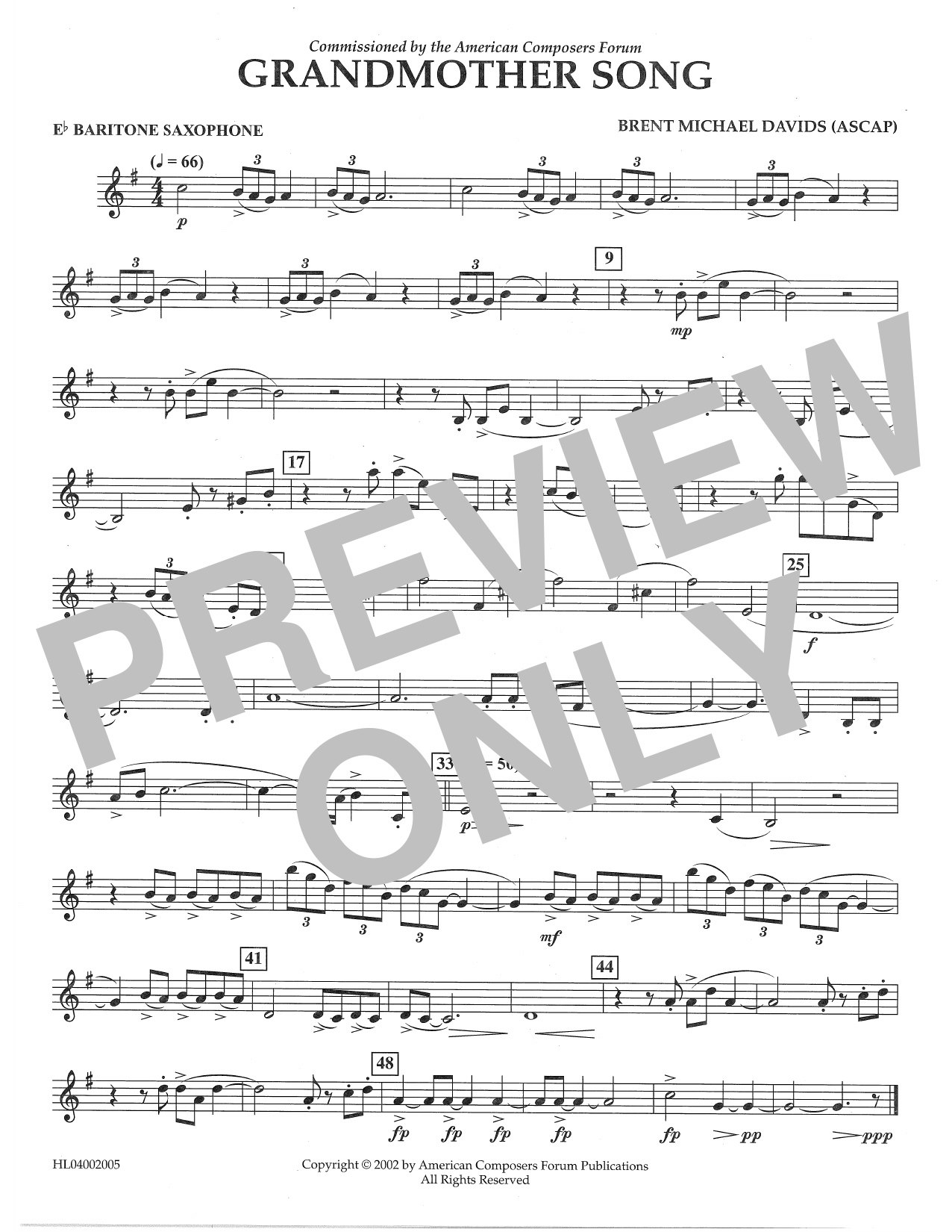 Download or print Brent Michael Davids Grandmother Song - Eb Baritone Saxophone sheet music, chords and digital score arranged for Concert Band. This Concert score includes 1 page(s).