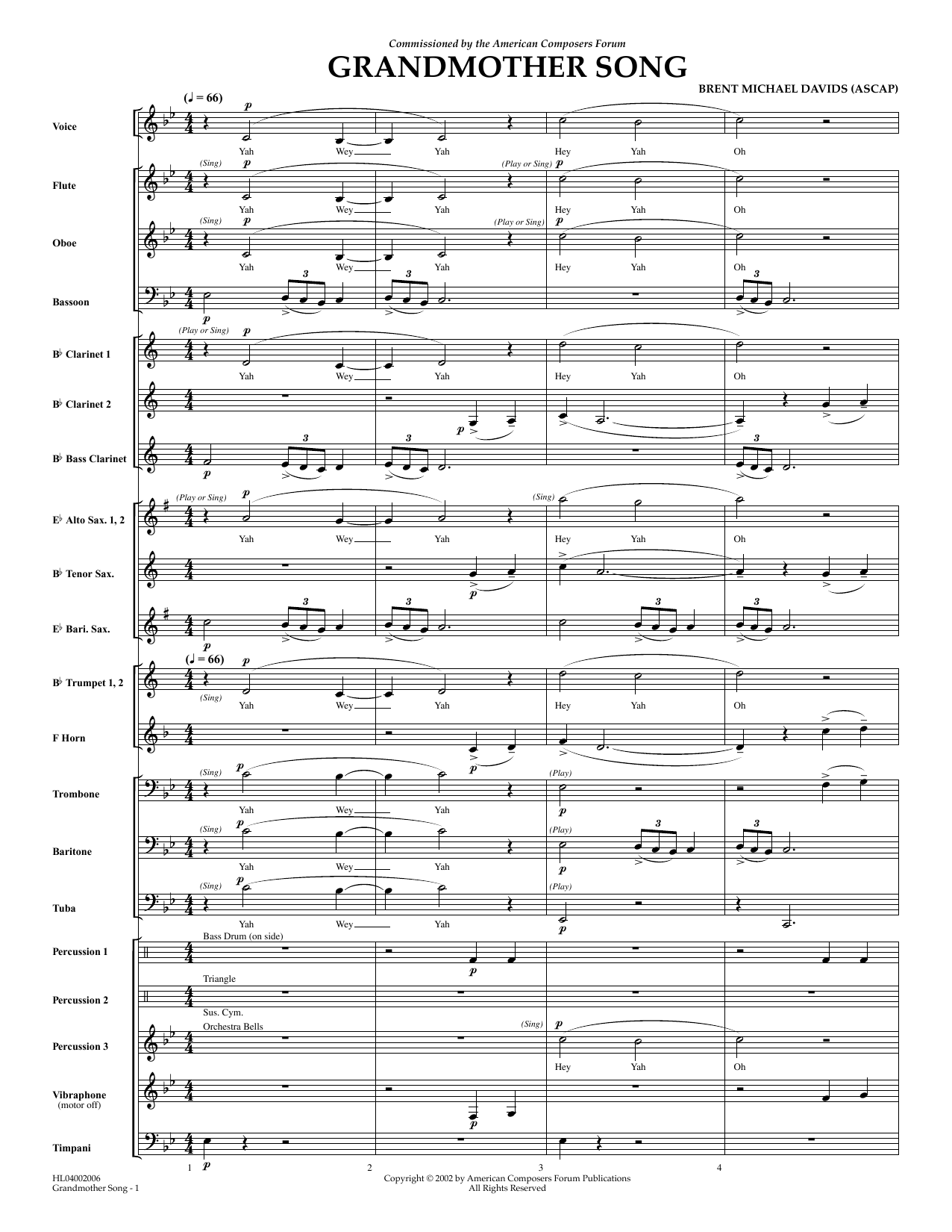 Download or print Brent Michael Davids Grandmother Song - Full Score sheet music, chords and digital score arranged for Concert Band. This Concert score includes 15 page(s).