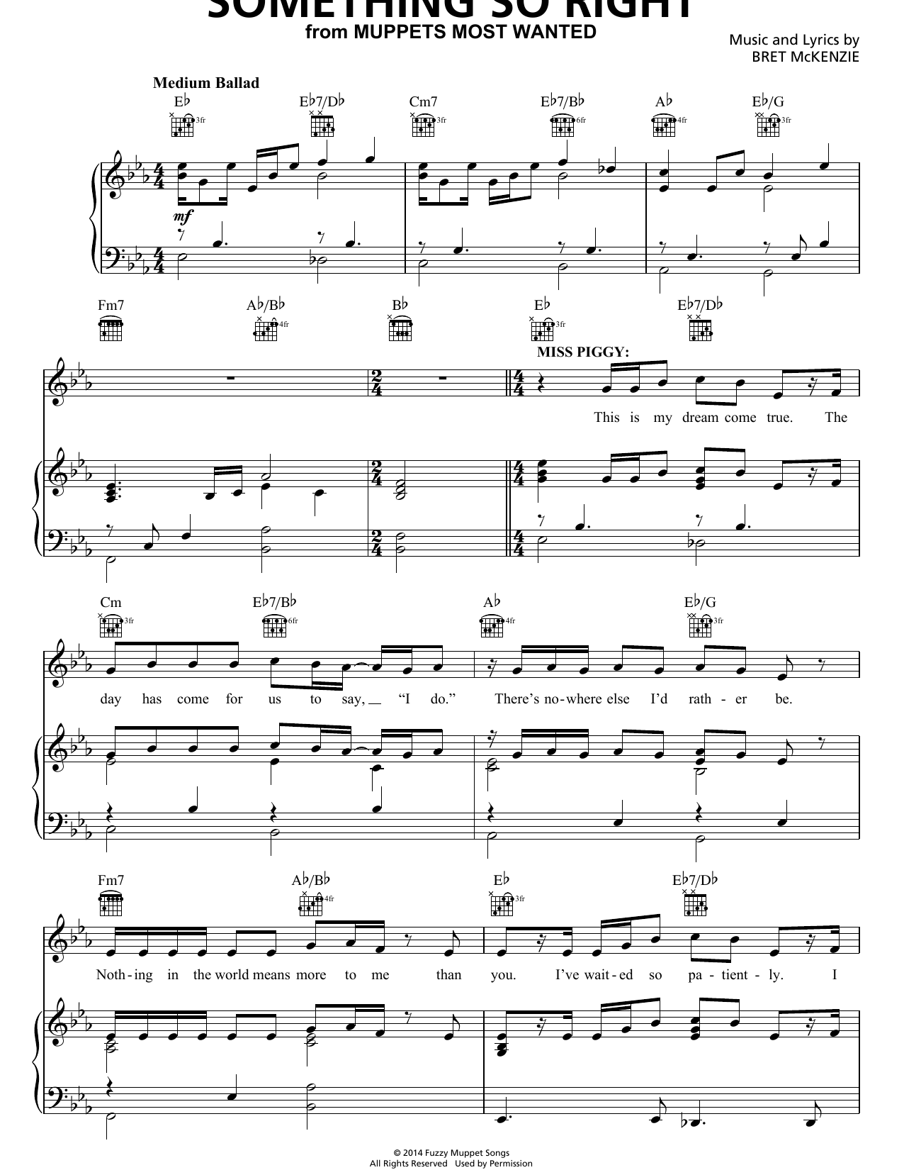 Download or print Bret McKenzie Something So Right sheet music, chords and digital score arranged for Piano, Vocal & Guitar Chords (Right-Hand Melody). This Children score includes 7 page(s).