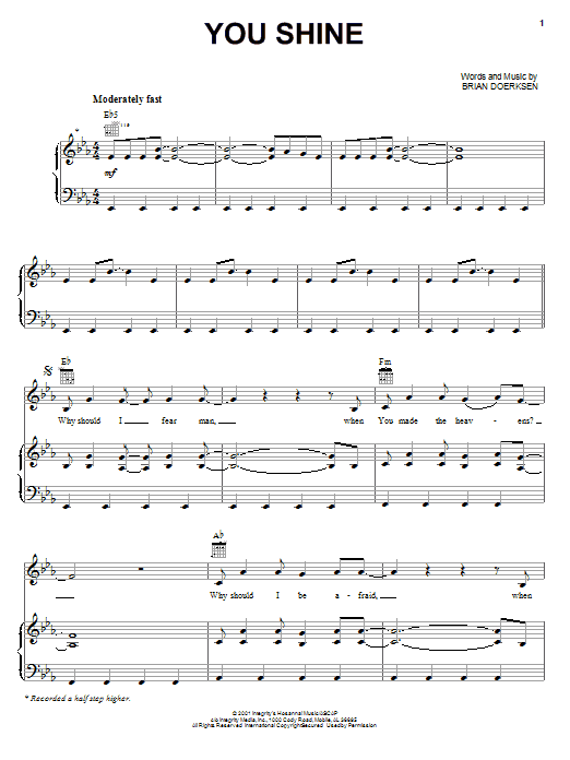 Download or print Brian Doerksen You Shine sheet music, chords and digital score arranged for Piano, Vocal & Guitar Chords (Right-Hand Melody). This Christian score includes 8 page(s).