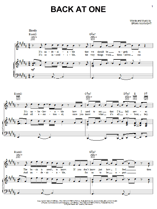 Download or print Brian McKnight Back At One sheet music, chords and digital score arranged for Piano & Vocal. This Love score includes 5 page(s).