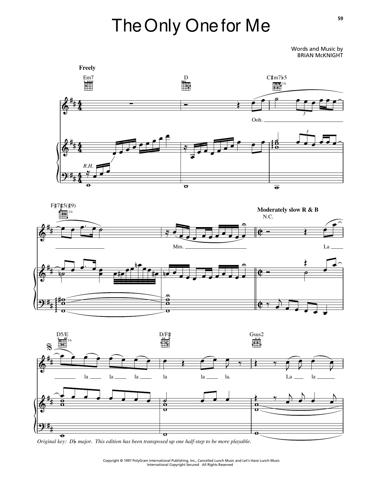 Download or print Brian McKnight The Only One For Me sheet music, chords and digital score arranged for Piano, Vocal & Guitar Chords (Right-Hand Melody). This Pop score includes 7 page(s).
