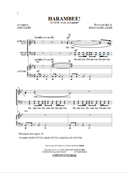 Download or print Greg Gilpin Harambee! sheet music, chords and digital score arranged for SATB Choir. This African score includes 18 page(s).