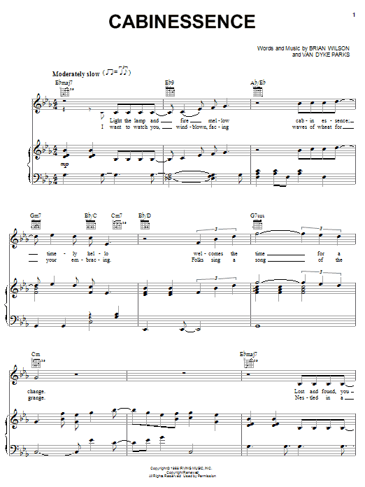Download or print Brian Wilson Cabinessence sheet music, chords and digital score arranged for Piano, Vocal & Guitar Chords (Right-Hand Melody). This Pop score includes 4 page(s).