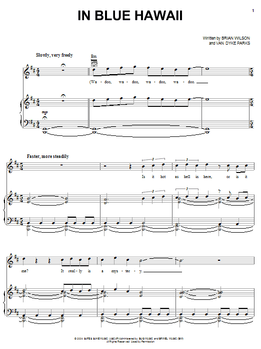 Download or print Brian Wilson In Blue Hawaii sheet music, chords and digital score arranged for Piano, Vocal & Guitar Chords (Right-Hand Melody). This Pop score includes 8 page(s).