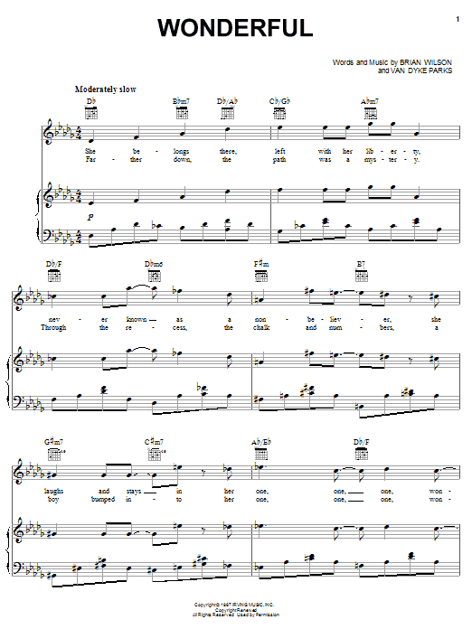 Download or print Brian Wilson Wonderful sheet music, chords and digital score arranged for Piano, Vocal & Guitar Chords (Right-Hand Melody). This Pop score includes 3 page(s).