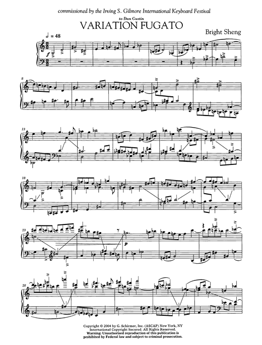 Download or print Bright Sheng Variation Fugato sheet music, chords and digital score arranged for Piano Solo. This Classical score includes 3 page(s).