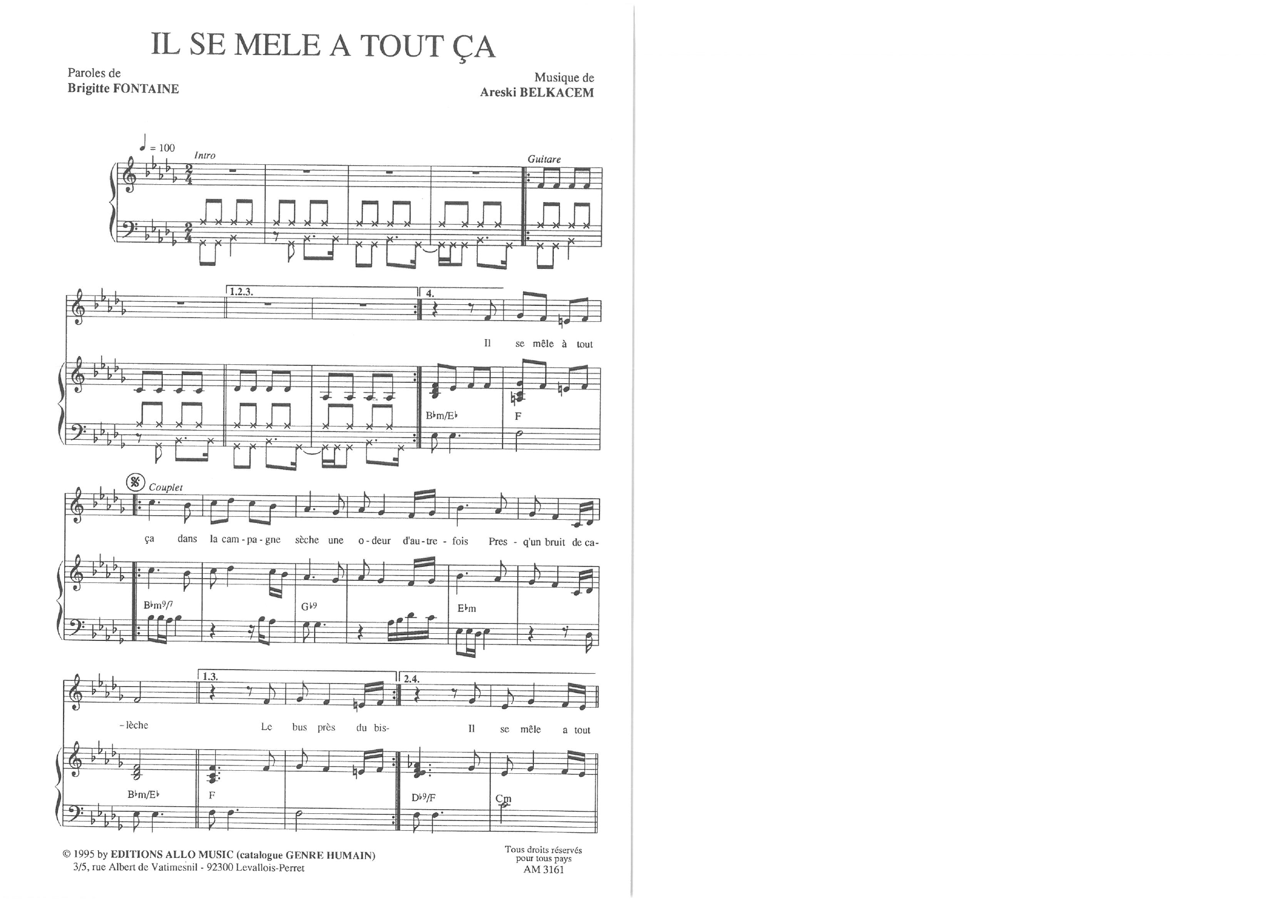 Download or print Brigitte Fontaine & Areski Belkacem Il S'en Passe sheet music, chords and digital score arranged for Piano & Vocal. This Classical score includes 3 page(s).
