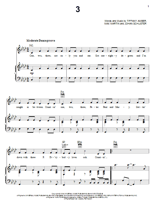 Download or print Britney Spears 3 sheet music, chords and digital score arranged for Piano, Vocal & Guitar Chords (Right-Hand Melody). This Pop score includes 5 page(s).