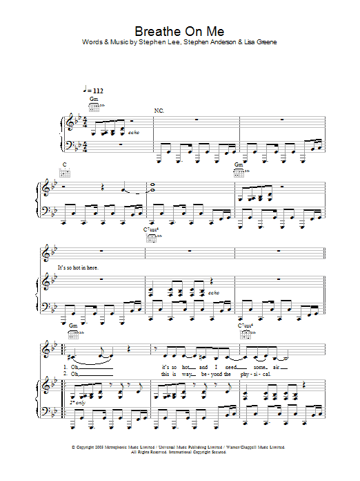Download or print Britney Spears Breathe On Me sheet music, chords and digital score arranged for Piano, Vocal & Guitar Chords. This Pop score includes 5 page(s).