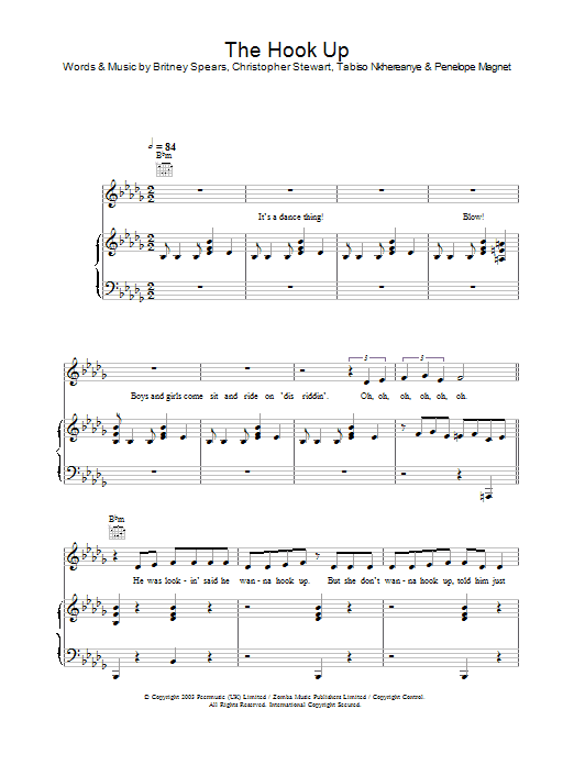 Download or print Britney Spears The Hook Up sheet music, chords and digital score arranged for Lead Sheet / Fake Book. This Pop score includes 3 page(s).