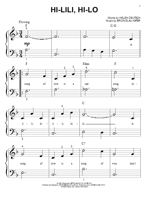 Download or print Bronislau Kaper Hi-Lili, Hi-Lo sheet music, chords and digital score arranged for Piano Solo. This Standards score includes 5 page(s).