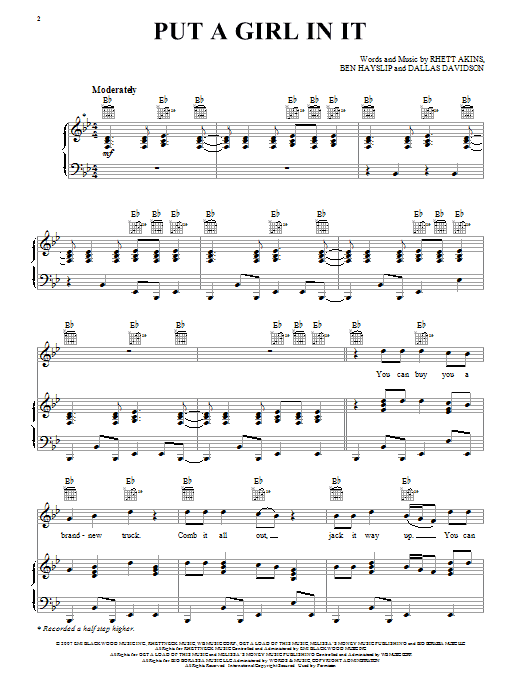 Download or print Brooks & Dunn Put A Girl In It sheet music, chords and digital score arranged for Piano, Vocal & Guitar Chords (Right-Hand Melody). This Country score includes 7 page(s).