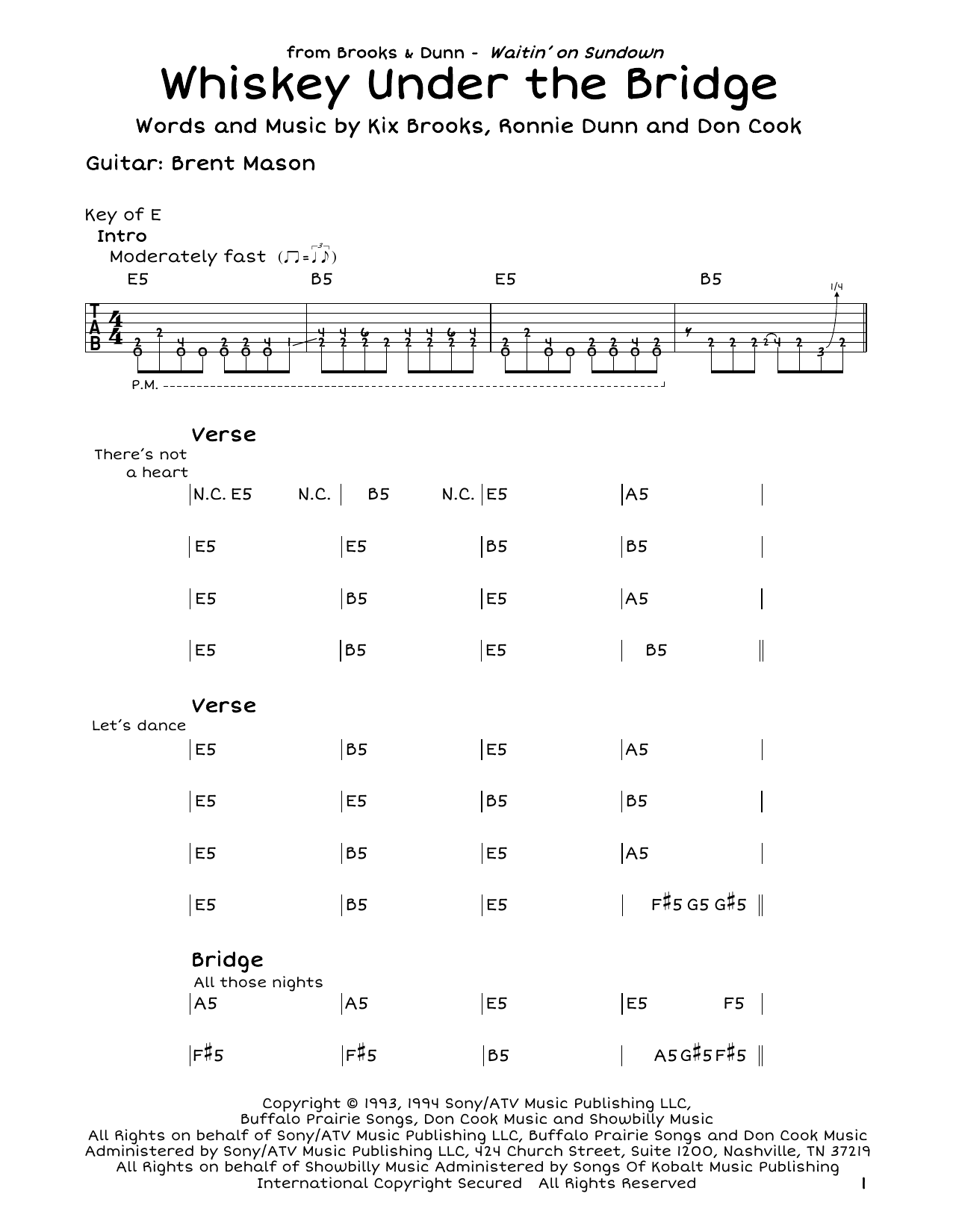 Download or print Brooks & Dunn Whiskey Under The Bridge sheet music, chords and digital score arranged for Guitar Lead Sheet. This Country score includes 2 page(s).
