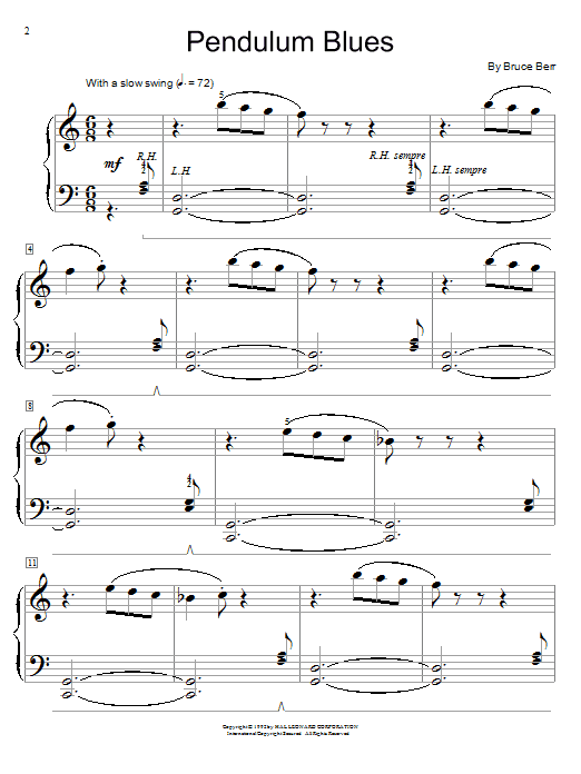 Download or print Bruce Berr Pendulum Blues sheet music, chords and digital score arranged for Educational Piano. This Pop score includes 2 page(s).