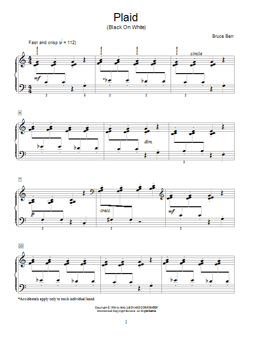 Download or print Bruce Berr Plaid (Black On White) sheet music, chords and digital score arranged for Educational Piano. This Children score includes 2 page(s).