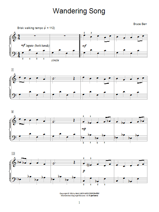 Download or print Bruce Berr Wandering Song sheet music, chords and digital score arranged for Educational Piano. This Children score includes 2 page(s).