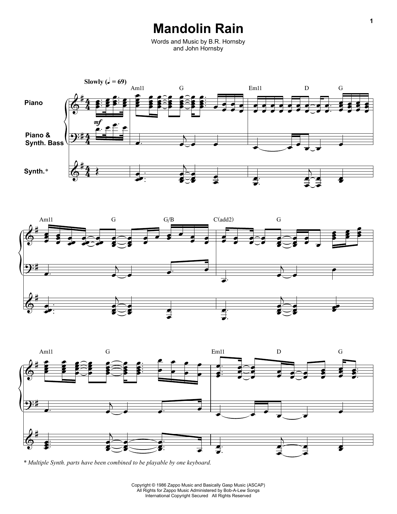 Download or print Bruce Hornsby And The Range Mandolin Rain sheet music, chords and digital score arranged for Keyboard Transcription. This Pop score includes 11 page(s).