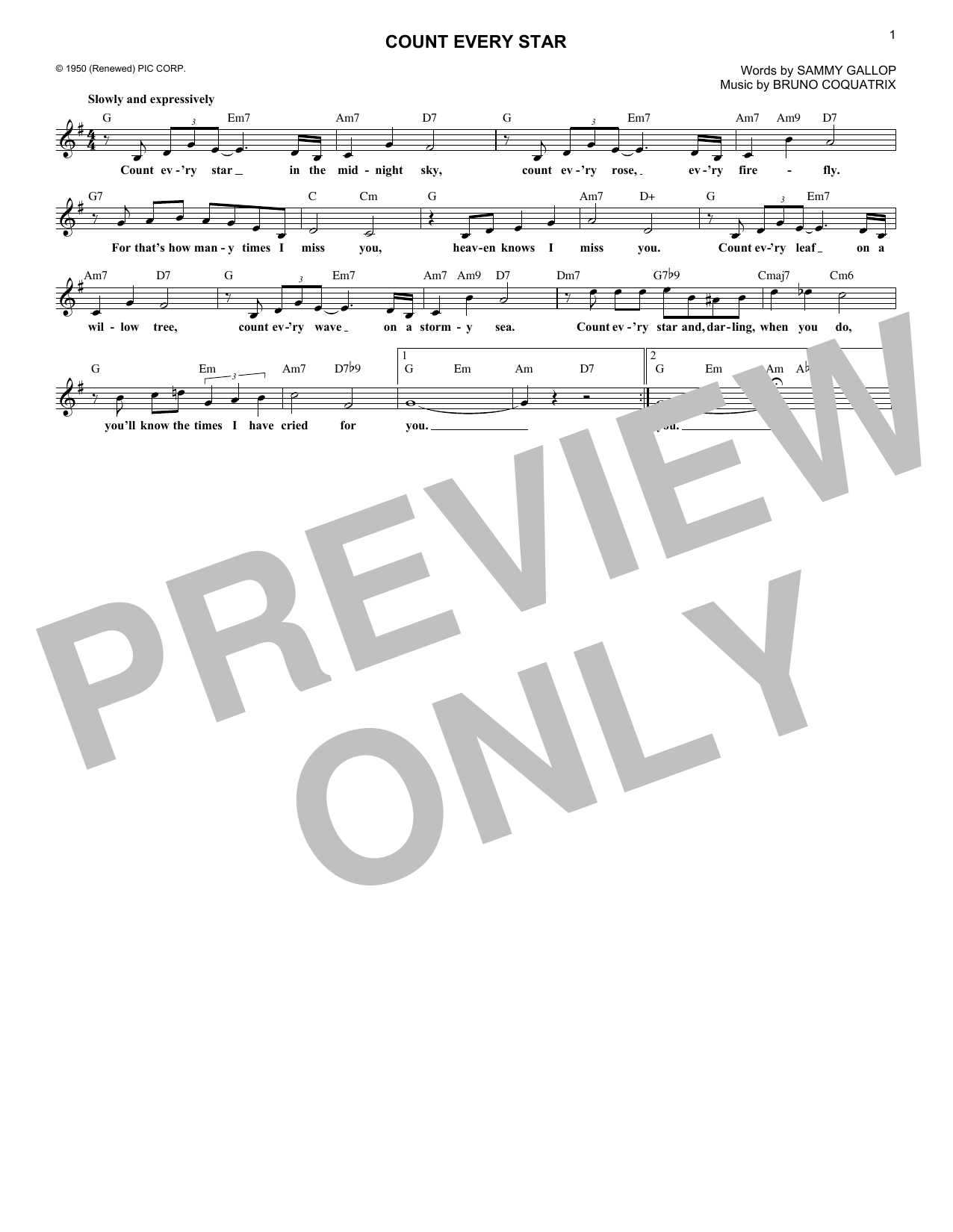 Download or print Bruno Coquatrix Count Every Star sheet music, chords and digital score arranged for Lead Sheet / Fake Book. This Jazz score includes 1 page(s).