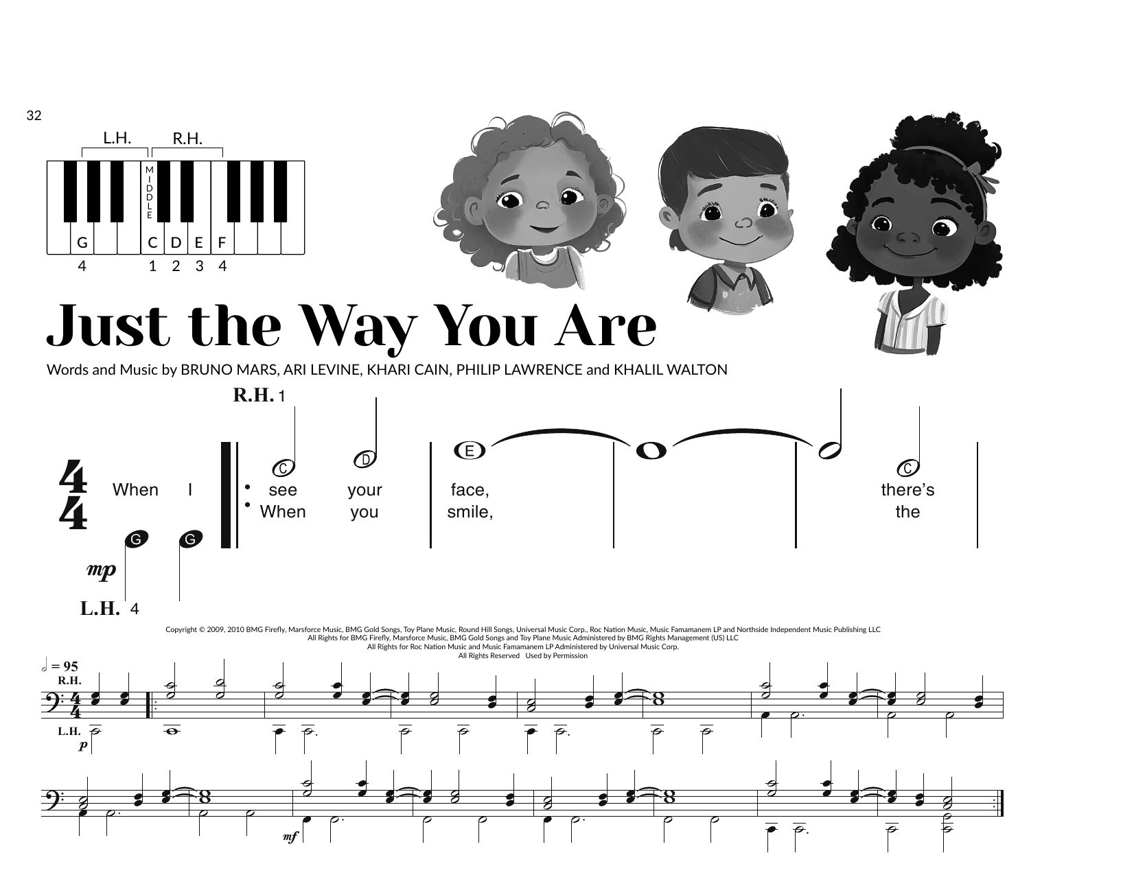 Download or print Bruno Mars Just The Way You Are (arr. Brittany McCorriston) sheet music, chords and digital score arranged for Very Beginner Piano. This Pop score includes 2 page(s).