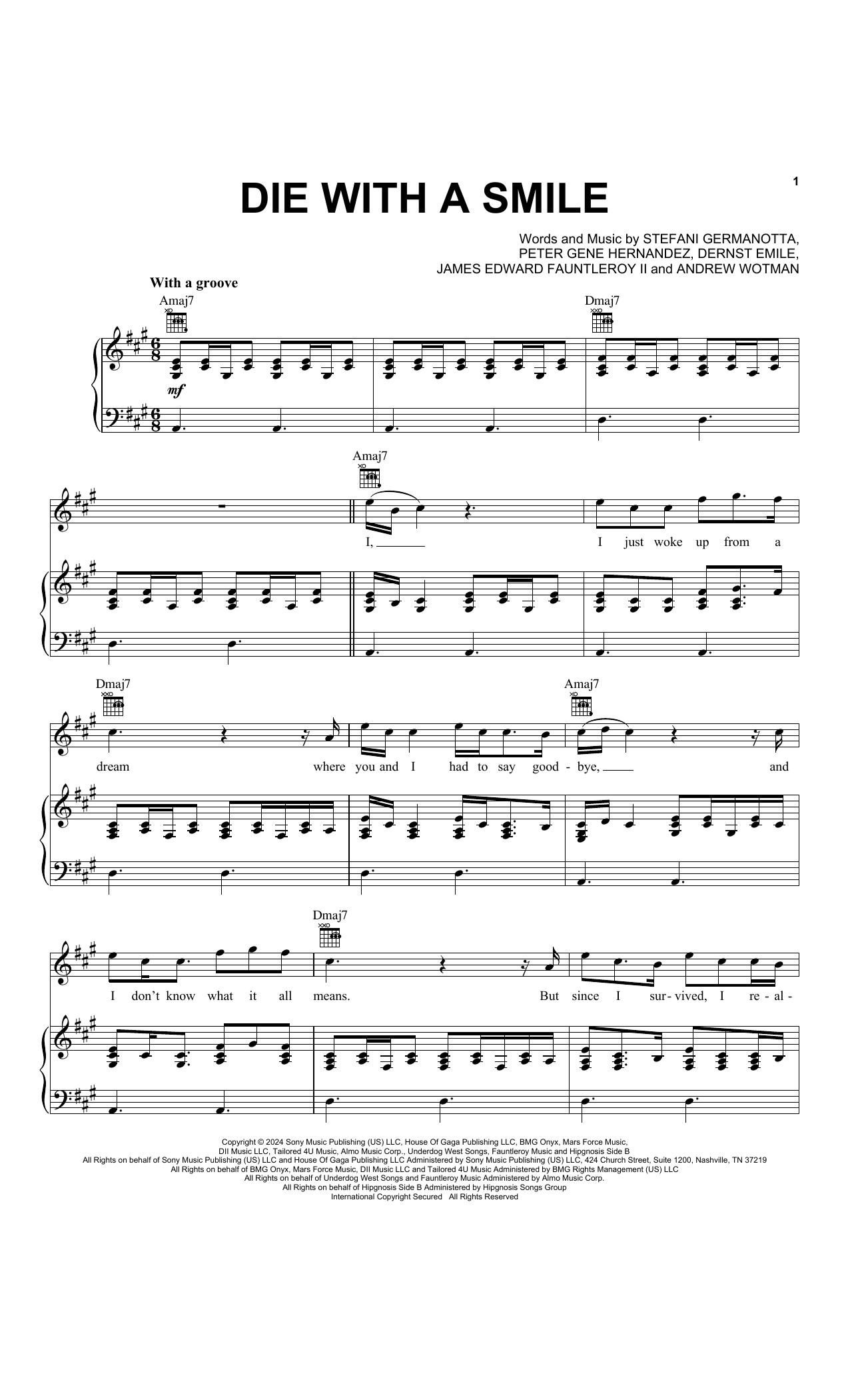 Quick facts Die With A Smile about digital sheet music