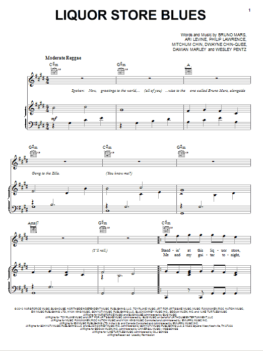 Download or print Bruno Mars Liquor Store Blues sheet music, chords and digital score arranged for Easy Guitar Tab. This Pop score includes 4 page(s).