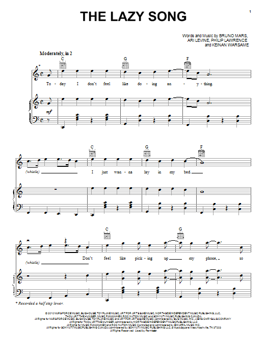 Quick facts The Lazy Song about digital sheet music