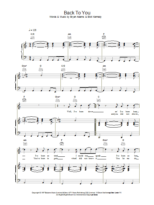 Download or print Bryan Adams Back To You sheet music, chords and digital score arranged for Guitar Tab. This Pop score includes 8 page(s).