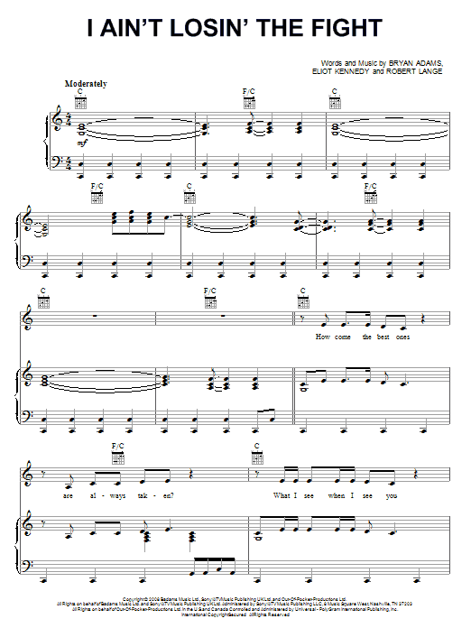 Download or print Bryan Adams I Ain't Losin' The Fight sheet music, chords and digital score arranged for Piano, Vocal & Guitar Chords (Right-Hand Melody). This Pop score includes 7 page(s).