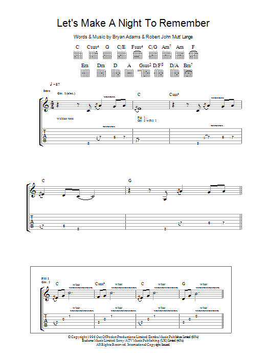 Download or print Bryan Adams Let's Make A Night To Remember sheet music, chords and digital score arranged for Piano, Vocal & Guitar Chords (Right-Hand Melody). This Pop score includes 10 page(s).