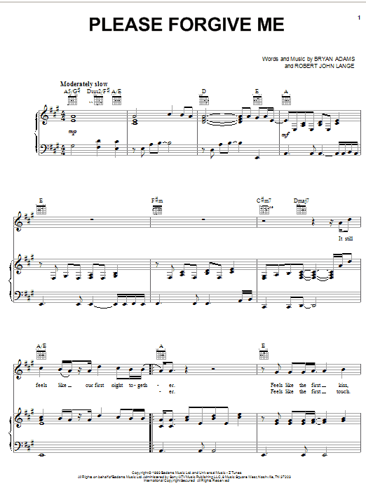 Download or print Bryan Adams Please Forgive Me sheet music, chords and digital score arranged for Guitar Tab. This Rock score includes 11 page(s).