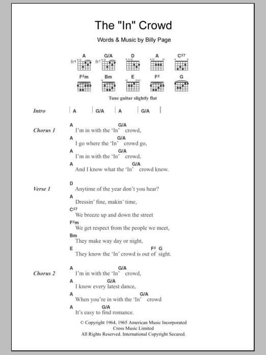 Download or print Bryan Ferry The "In" Crowd sheet music, chords and digital score arranged for Guitar Chords/Lyrics. This Rock score includes 2 page(s).