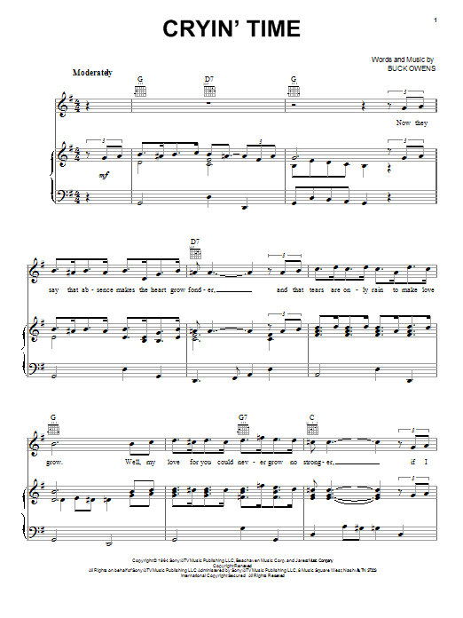 Download or print Buck Owens Cryin' Time sheet music, chords and digital score arranged for Lead Sheet / Fake Book. This Country score includes 1 page(s).