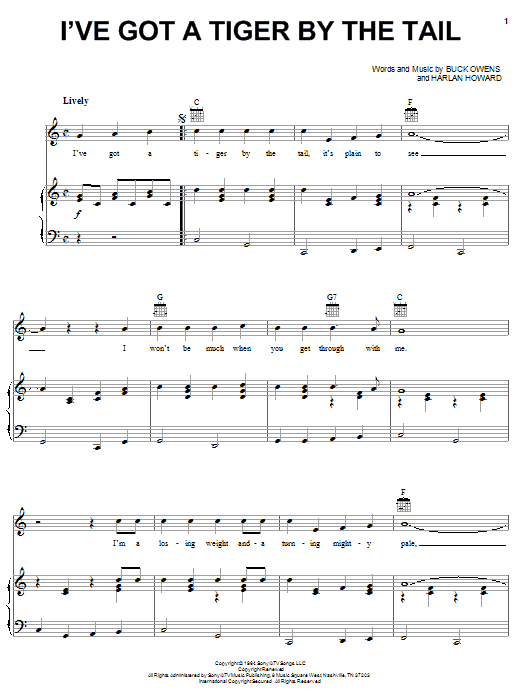 Download or print Buck Owens I've Got A Tiger By The Tail sheet music, chords and digital score arranged for Lead Sheet / Fake Book. This Country score includes 1 page(s).