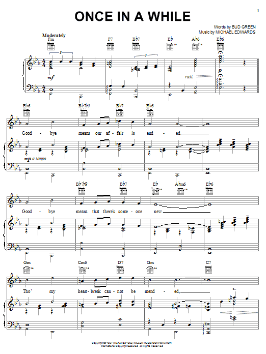 Download or print Bud Green Once In A While sheet music, chords and digital score arranged for Easy Piano. This Jazz score includes 2 page(s).