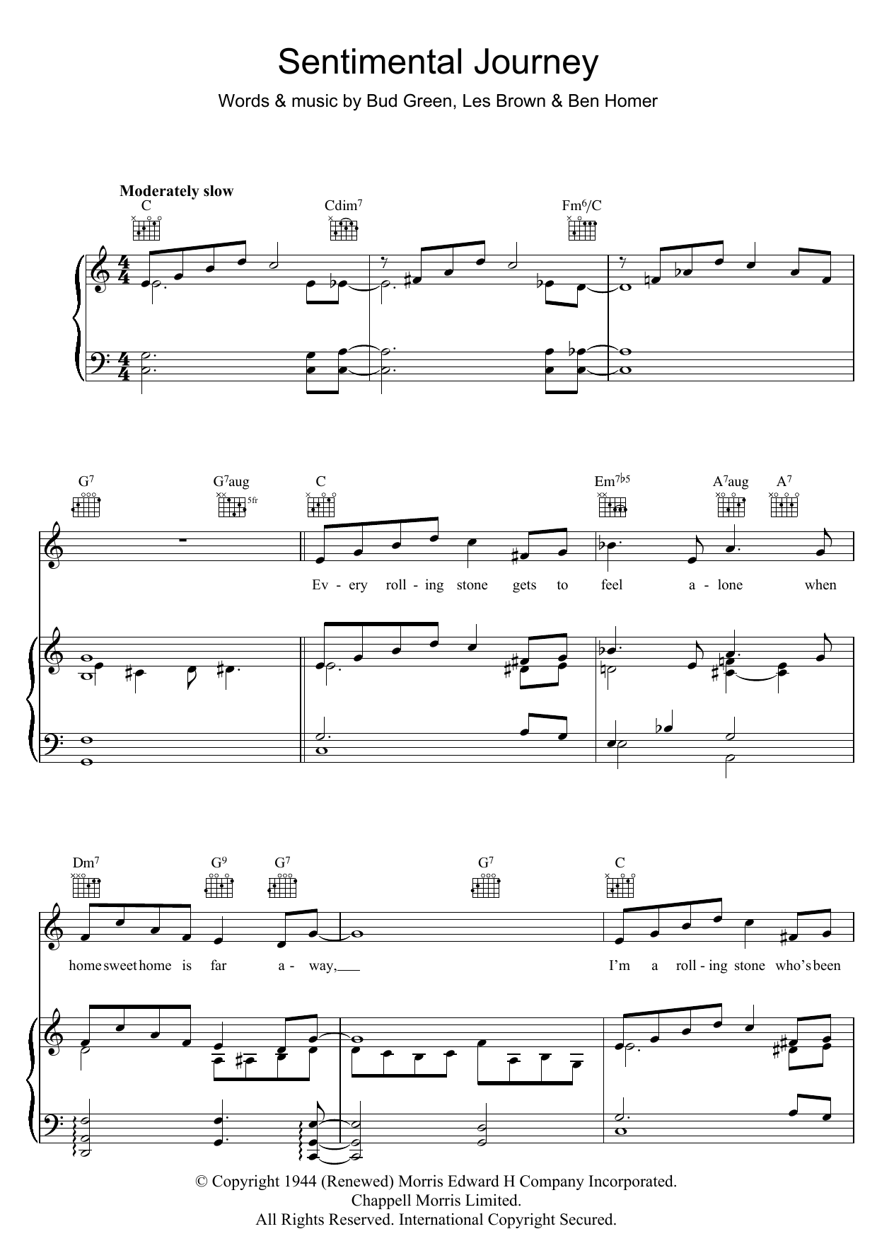 Download or print Buddy Greene Sentimental Journey sheet music, chords and digital score arranged for Piano, Vocal & Guitar Chords. This Standards score includes 5 page(s).
