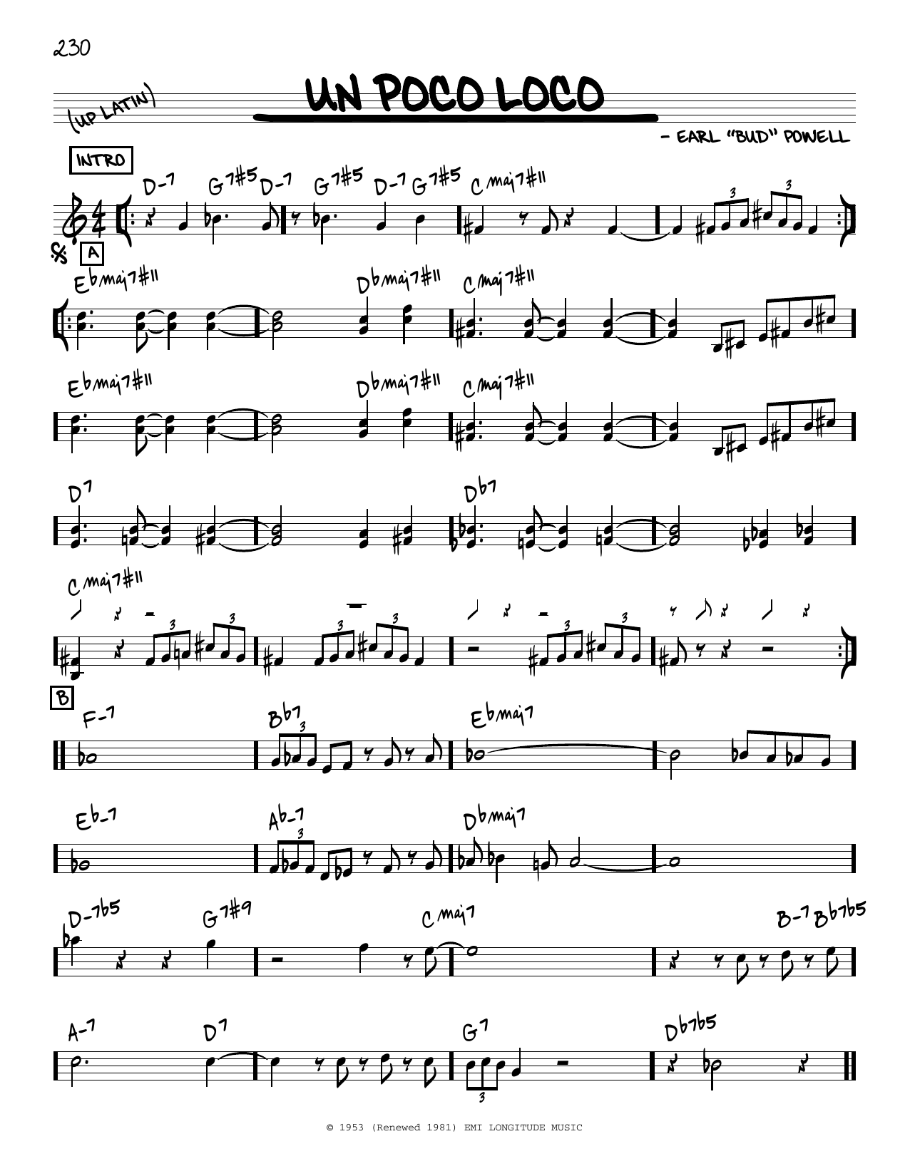 Download or print Bud Powell Un Poco Loco sheet music, chords and digital score arranged for Piano Solo. This Jazz score includes 5 page(s).
