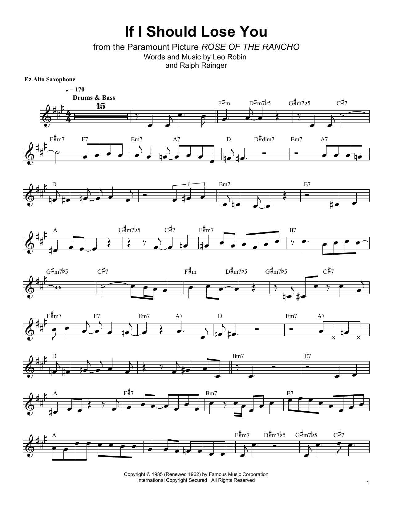 Download or print Bud Shank If I Should Lose You sheet music, chords and digital score arranged for Alto Sax Transcription. This Jazz score includes 5 page(s).