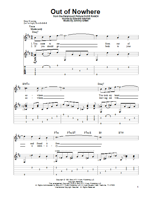 Download or print Buddy De Franco Out Of Nowhere sheet music, chords and digital score arranged for Solo Guitar. This Jazz score includes 3 page(s).